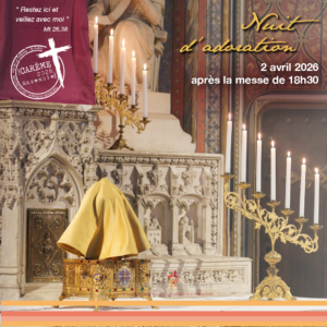 « Tous les Évènements Nuit d’adoration 2 avril 2026 /19 h 30 - 23 h 30 « Jeudi Saint Vendredi Saint » Ajouter au calendrier Google Agenda iCalendar Outlook 365 Outlook Live Détails Date : 2 avril 2026 Heure : 19 h 30 - 23 h 30
